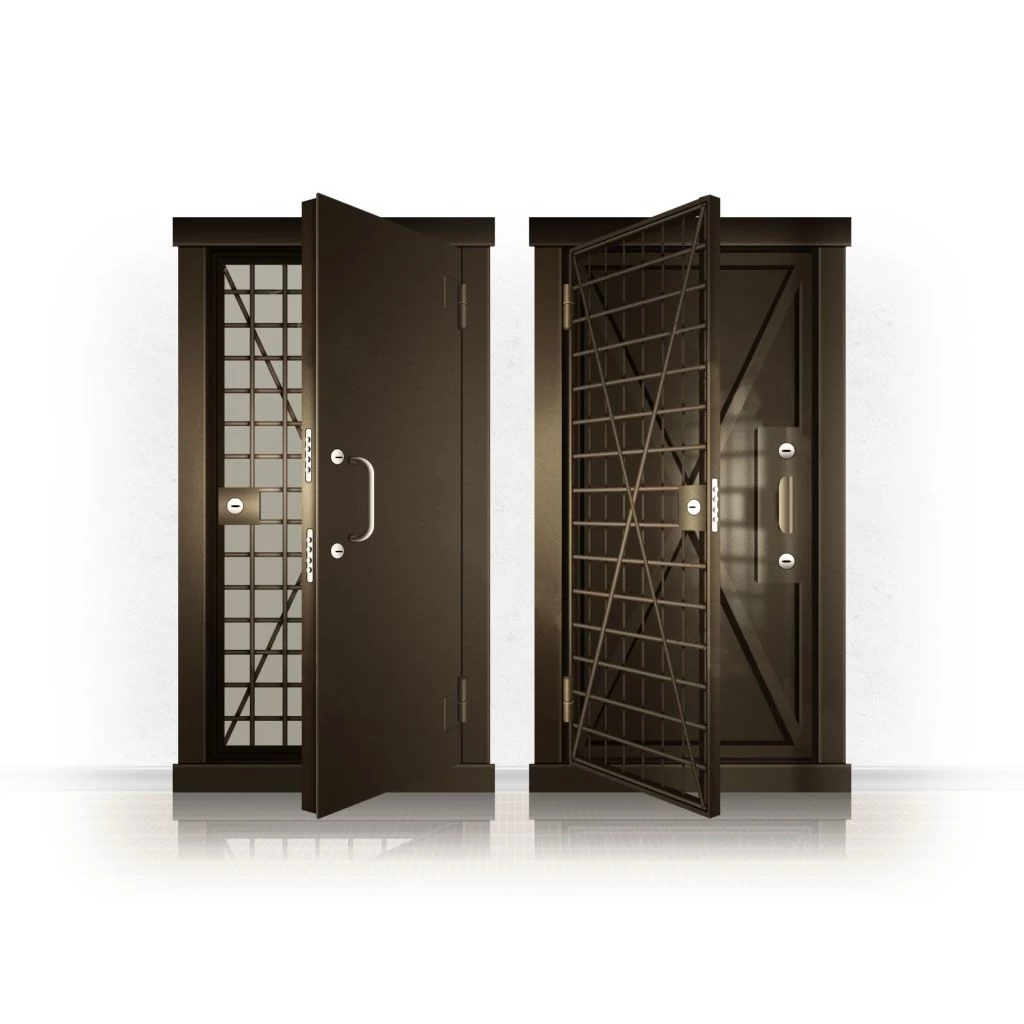 Металлические двери КХО и КХН представляют собой входные блоки, обладающие высоким уровнем взломостойкости и состоят из трех основных элементов: усиленного каркаса, сплошного металлического полотна и решетчатой двери. Дверной блок изготавливается из стального уголка 100*100 мм. Места крепления блока к стене цементируются и закрываются стальными наличниками шириной 40 мм. Крепеж заходит вглубь стены на 80 мм. В конструкции внешней створки монтируются ребра жесткости, для обшивки используется сталь толщиной не менее 3 мм. Внутренняя решетка изготавливается из прутка диаметром 16 мм. Размер ячеек решетки должен составлять не более 15 на 15 см. В точках пересечения прутья надежно приваривают друг к другу. В КХО и КХН необходимо поддерживать определенную температуру и влажность. Для этого внутреннее пространство глухой двери заполняется теплоизоляционным материалом, а по периметру двери приклеивается уплотнитель. Такие двери оборудуются замками с повышенным уровнем взломостойкости. Специализированные двери КХО и КХН в Городище могут быть оснащены сигнализацией, в конструкции могут быть проушины для навесного замка и элементами для опечатывания. Если идет речь о двери в комнату хранения оружия, в створке оборудуется окно для выдачи оружия и спец. средств, которое накрывается стальной дверцей.