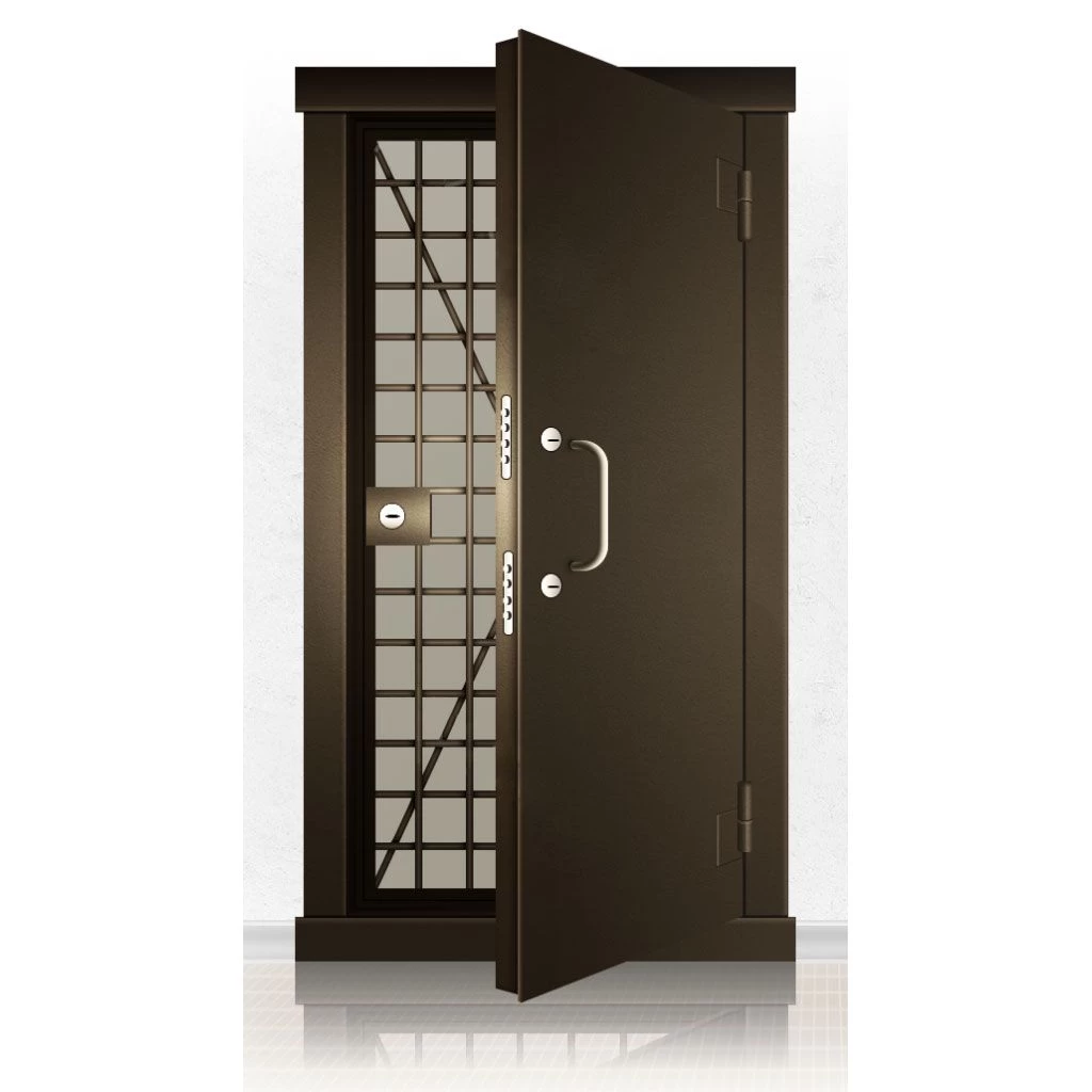 Металлические двери КХО и КХН представляют собой входные блоки, обладающие высоким уровнем взломостойкости и состоят из трех основных элементов: усиленного каркаса, сплошного металлического полотна и решетчатой двери. Дверной блок изготавливается из стального уголка 100*100 мм. Места крепления блока к стене цементируются и закрываются стальными наличниками шириной 40 мм. Крепеж заходит вглубь стены на 80 мм. В конструкции внешней створки монтируются ребра жесткости, для обшивки используется сталь толщиной не менее 3 мм. Внутренняя решетка изготавливается из прутка диаметром 16 мм. Размер ячеек решетки должен составлять не более 15 на 15 см. В точках пересечения прутья надежно приваривают друг к другу. В КХО и КХН необходимо поддерживать определенную температуру и влажность. Для этого внутреннее пространство глухой двери заполняется теплоизоляционным материалом, а по периметру двери приклеивается уплотнитель. Такие двери оборудуются замками с повышенным уровнем взломостойкости. Специализированные двери КХО и КХН в Городище могут быть оснащены сигнализацией, в конструкции могут быть проушины для навесного замка и элементами для опечатывания. Если идет речь о двери в комнату хранения оружия, в створке оборудуется окно для выдачи оружия и спец. средств, которое накрывается стальной дверцей.