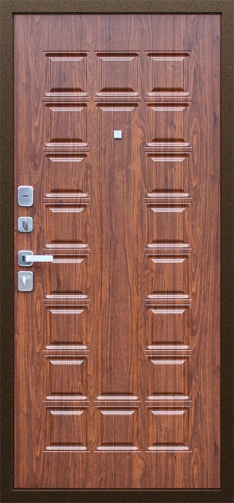Надежная входная Дверь Спартак Орех темный премиум класса по цене 34 100 руб. Большая толщина стали защитит от проникновения в ваш дом, квартиру или коттедж. Используется очень качественная фурнитура: замки, цилиндры, ручки, защелки. Покрытие и отделка двери изготовлено под внимательным контролем производителя. Дверь имеет долгий срок службы и гарантию.