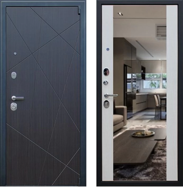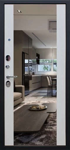 Надежная входная Дверь Вектор с зеркалом премиум класса по цене 49 050 руб. Большая толщина стали защитит от проникновения в ваш дом, квартиру или коттедж. Используется очень качественная фурнитура: замки, цилиндры, ручки, защелки. Покрытие и отделка двери изготовлено под внимательным контролем производителя. Дверь имеет долгий срок службы и гарантию.